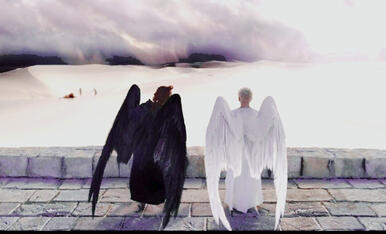 ‘a demon can get into real trouble, doing the right thing.’ he nudged the angel. ‘funny if we both got it wrong, eh? funny if i did the good thing and you did the bad one, eh?‘
